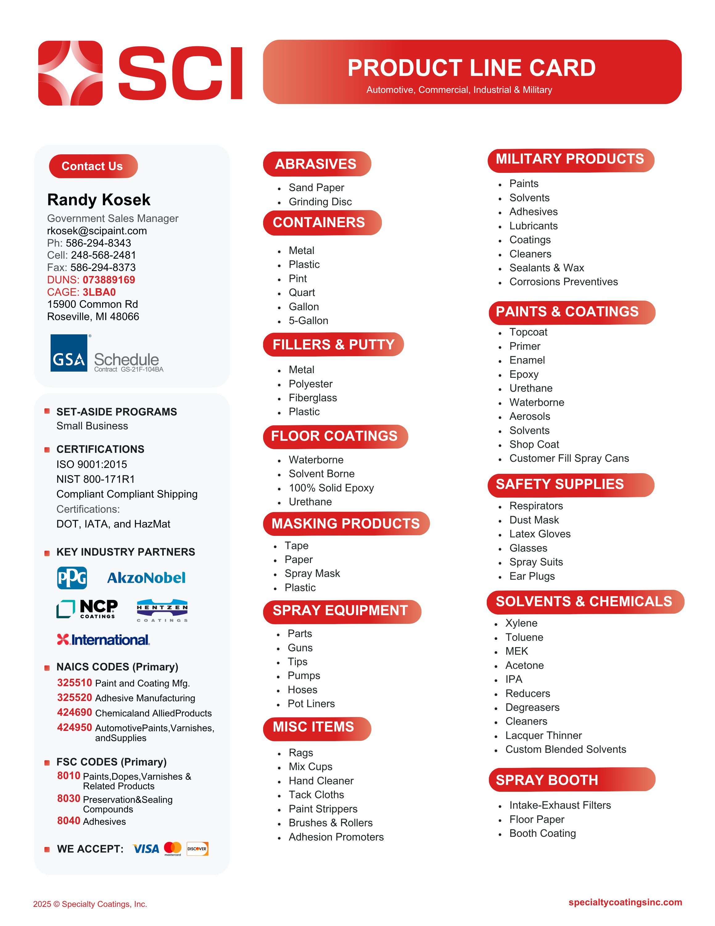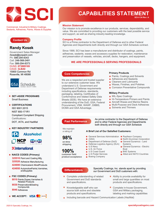 SCI can offer a credit application to customers who choose to work directly with one of our experienced Sales Reps. To apply for credit, email info@specialitycoatingsinc.com for more information.